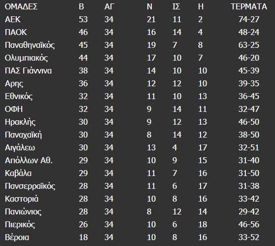 ΑΕΚ (Ζλάτκο Τσαϊκόφσκι): Χρηστίδης, Μουσούρης, Ιντζόγλου, Ραβούσης, Νικολάου, Βιέρα, Τάσος (79′ Λαζ. Παπαδόπουλος), Νικολούδης, Μπάγεβιτς, Παπαϊωάννου (65′ Τόσκας), Μαύρος.
