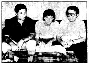 Ο Τρέβορ Ρος ενώ υπογράφει το συμβόλαιο του ανάμεσα στον γενικό αρχηγό Δημήτρη Ρουσσάκη (αριστερά) και το γενικό γραμματέα Νίκο Στράτο (δεξιά)